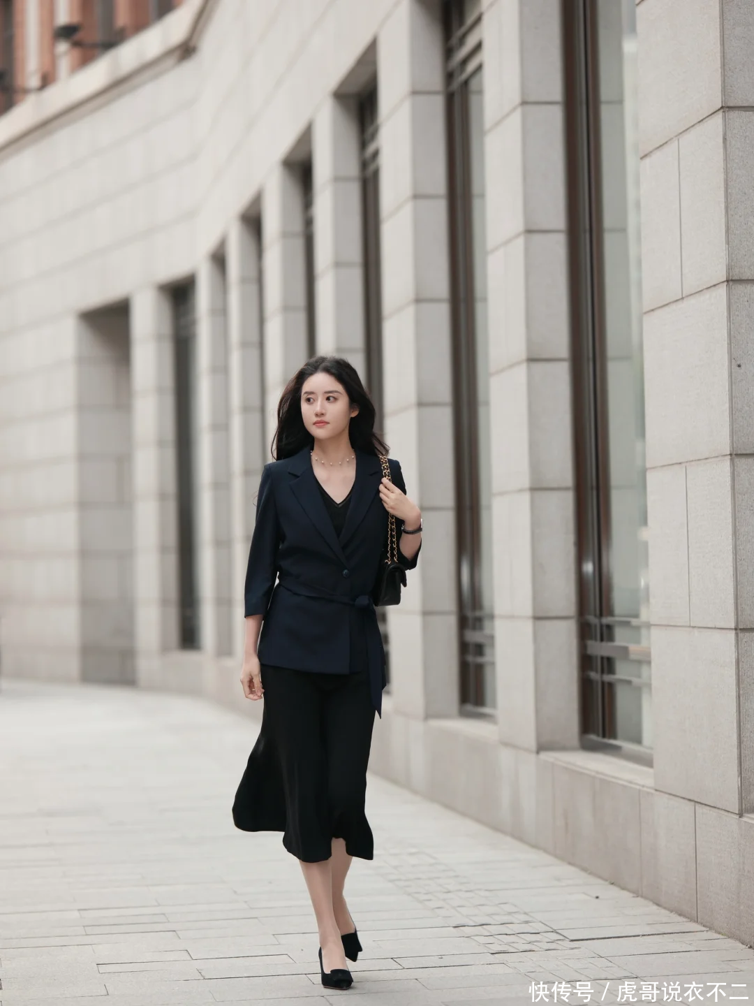 娘man平衡:黑色西装+鱼尾裙+尖头鞋,硬朗与柔美的碰撞充满戏剧张力。